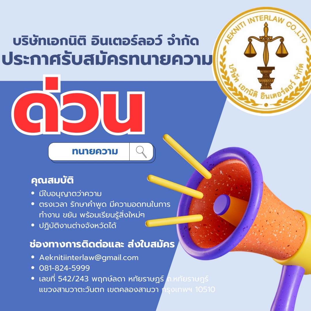 รู้กฎหมายกับ Aekniti interlaw จากบทความของเราคุณจะได้ความรู้ความเข้าใจทางด้านกฏหมาย ขั้นตอนการต่างๆ อย่างถูกต้องและเชื่อถือได้